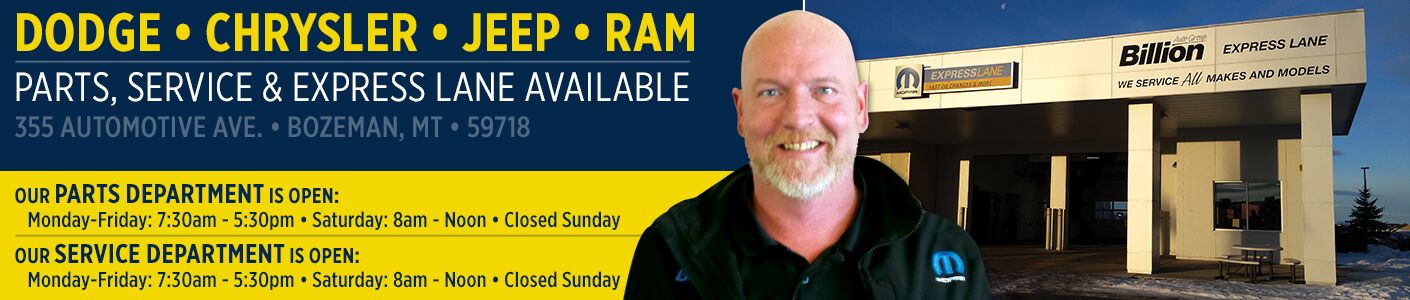 At Billion Auto Group, we know that finding time to have your vehicle serviced isn't always easy. This is why we're pleased to feature Express Lane service in Bozeman, MT. Express Lane service is done fast and done right - quick, convenient, no appointment needed service performed by certified technicians designed to save you time and money and increase your peace-of-mind. We can service all makes and models and can perform warranty replacements on most makes and models, so chances are we're the best choice in Bozeman no matter what you drive. With Express Lane service, you can stop in when its convenient for you when it's time for your next oil and filter change, chassis lube, tire rotation, brake inspection, tire inspection, battery test or replacement, filter replacement, windshield wiper blade replacement, coolant top off, bulb replacement and more. On top of that, we finish up any oil change service with a multi-point inspection so you can be aware of any issues that can become major problems in the future and have a plan as to how to tackle them. Give us a call with questions or simply stop by when it's time for your next minor maintenance procedure. We look forward to getting you back on the road quickly at Billion Auto Group with Express Lane Service!