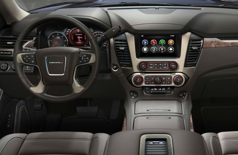 The interior of the 2016 GMC Yukon Denali in Bozeman, MT is as luxurious as an SUV gets. Inside of this highly versatile and extremely capable full-size SUV you’ll find an incredible list of high-tech features, luxurious comfort options and the latest safety technology. A few of the top features in this new Yukon Denali include a customizable driver information display, rear-seat Blu-Ray entertainment system with a 9-inch LCD screen, satellite radio, Wi-Fi hotspot, leather upholstery, three-zone automatic climate control, heated seats, active noise cancellation and much more.